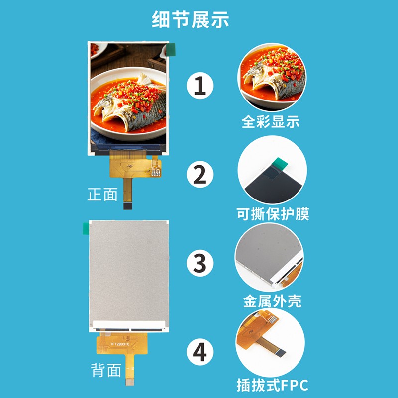 • 2.8寸TFT顯示屏 240*320全彩高清LCD液晶屏