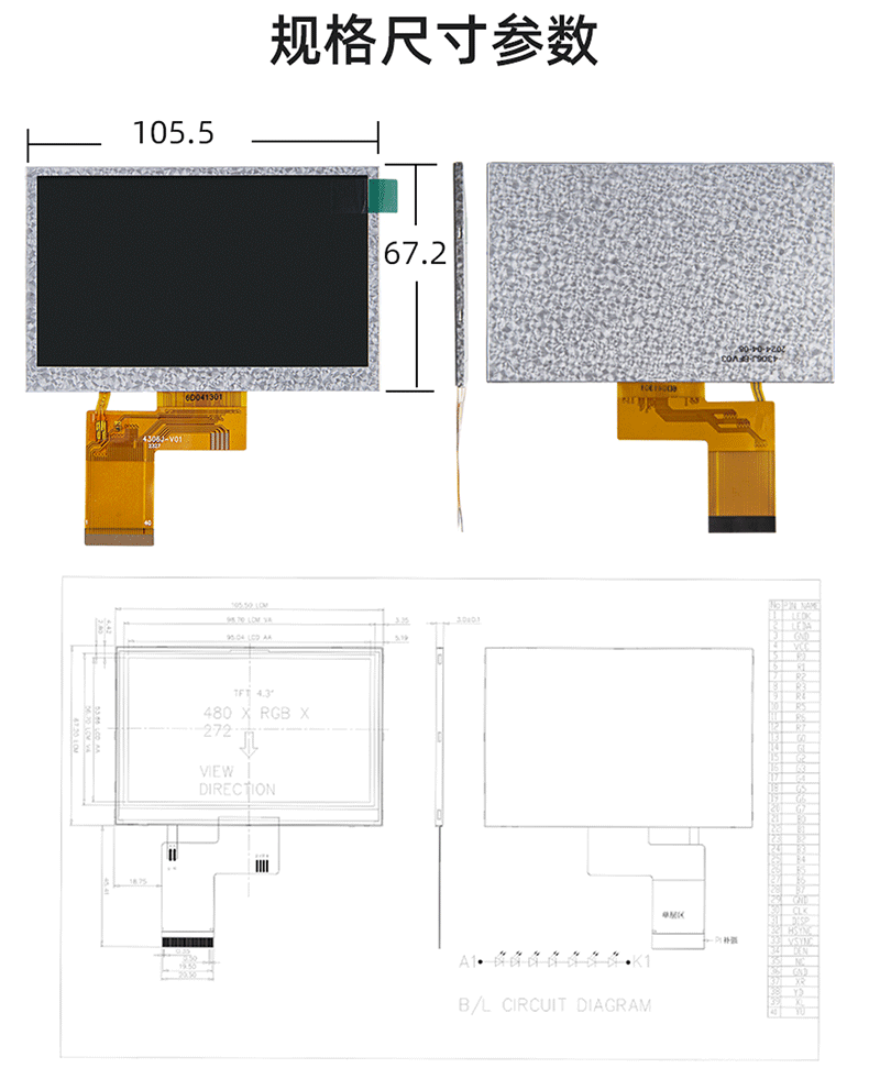 4.3寸顯示屏LCD液晶屏TFT彩屏TFT4303J-V03 TN 4.3寸顯示屏LCD液晶屏TFT彩屏TFT4303J-V03 TN