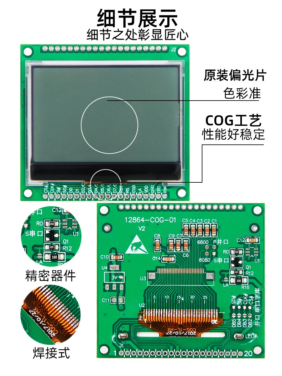 1.9寸小尺寸顯示器12864液晶點陣系列屏12864-COG-01