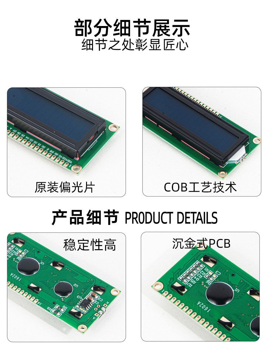 • 1602點(diǎn)陣屏帶字符圖形字體顯示屏